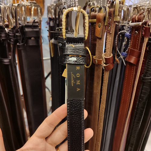 کمربند چرمی زنانه فلوتر دولایه ۲سانتی با سگک طلایی مدل C421