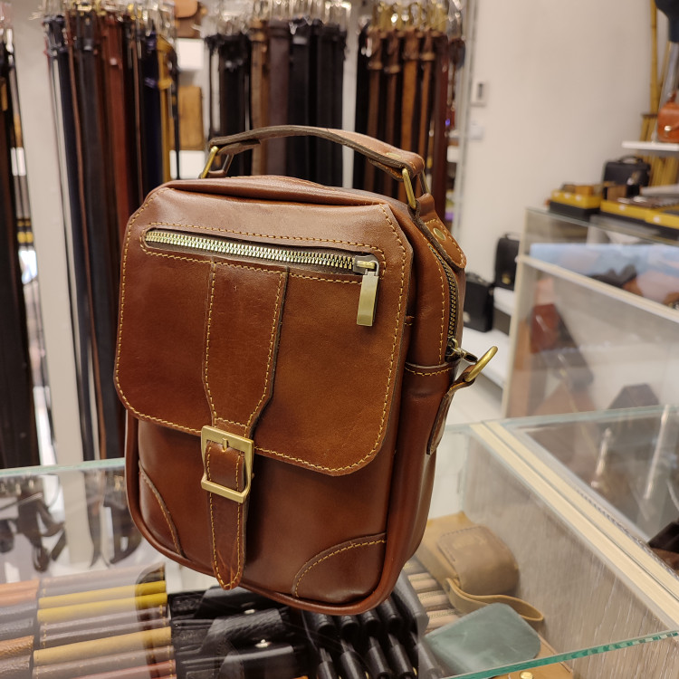 کیف رودوشی سگک دار چرمی ساخته شده از چرم گاوی درجه یک با لایه های چرمی و آستر طبیعی وزیپ های فلزی ، دارای فضاهای تفکیکی مناسب برای حمل لوازم شخصی