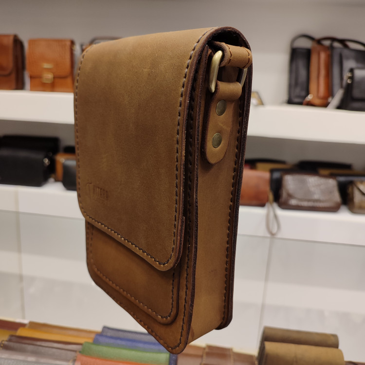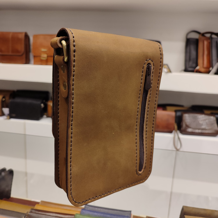 کیف پاسپورتی دست دوز چرمی ساخته شده از چرم گاوی هورسی،دارای فضاسازی برای قراردادن موبایل با هر اندازه، پاسپورت،وجه نقد و لوازم شخصی دیگر و تسمه رودوشی
