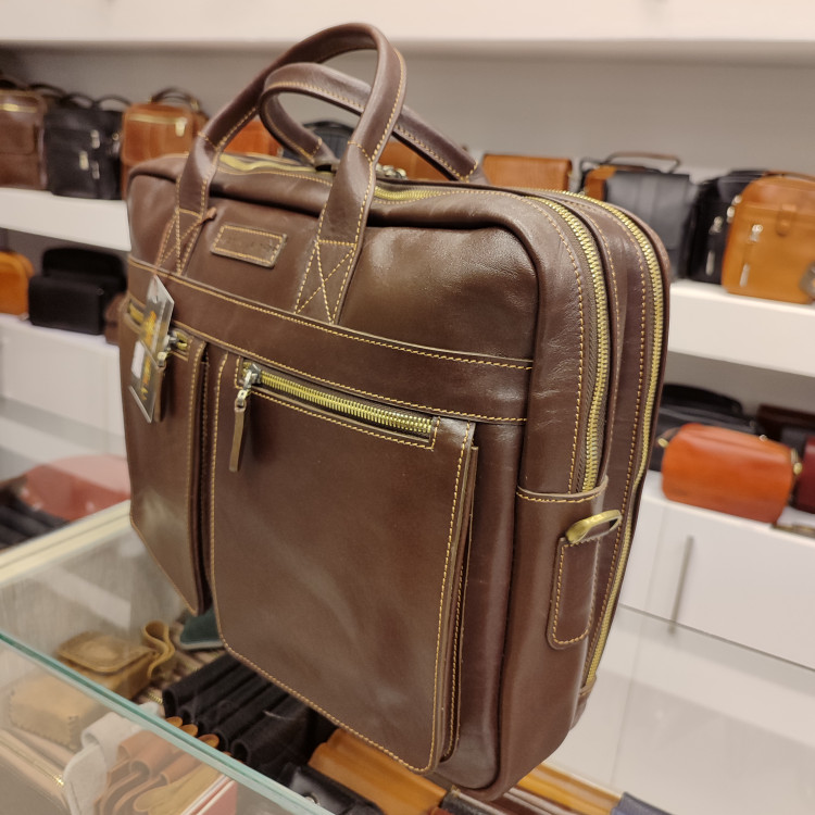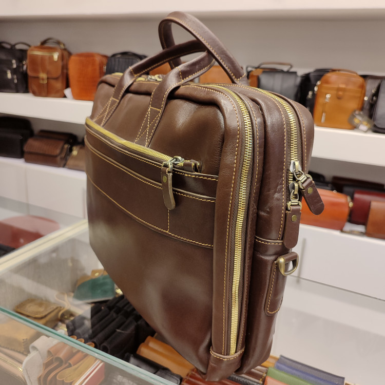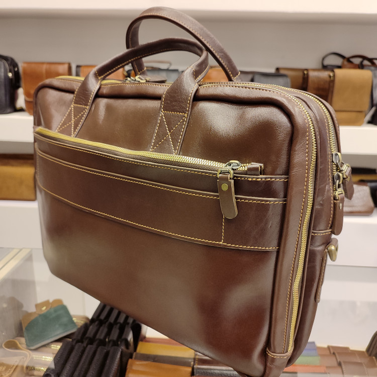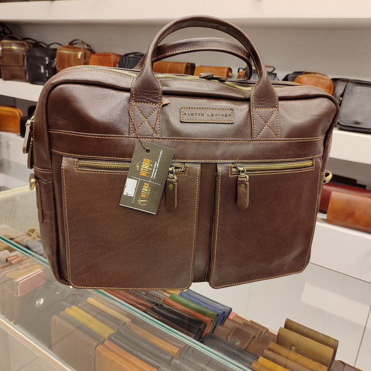 کیف اداری چرمی بزرگ ساخته شده از چرم گاوی و بسیار مناسب برای حمل لپ تاپ و وسایل بزرگ اداری و سفرهای یکروزه کاری، برای حمل لوازم شخصی با زیپ فلزی