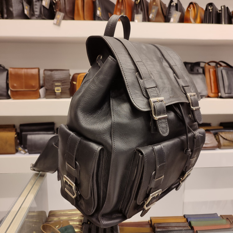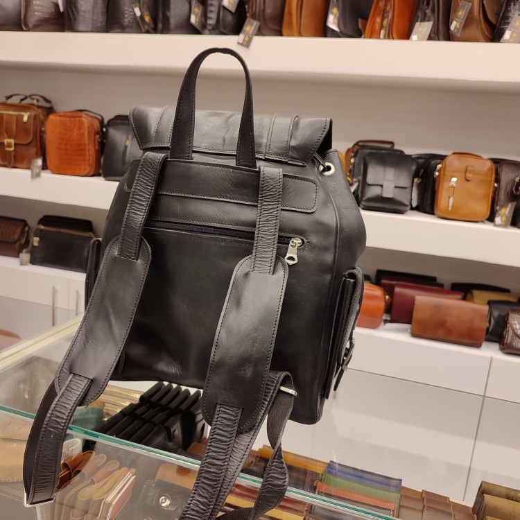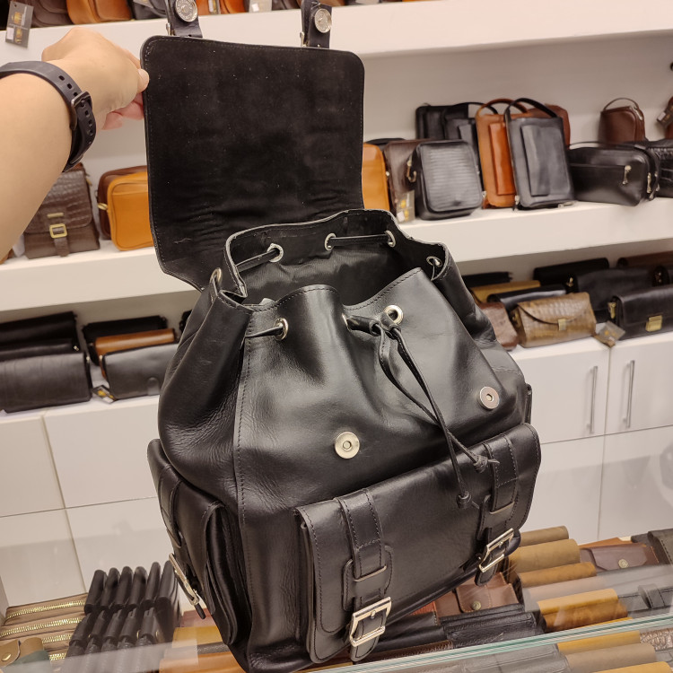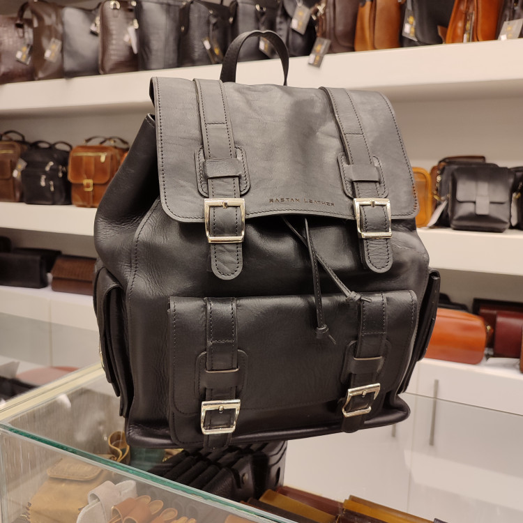 کوله پشتی طرح امریکایی چرمی ساخته شده از چرم گاوی ضخیم، دارای جیب و زیپ های کاربردی بر روی بدنه و داخل کیف، مناسب برای سفر، طبیعت گردی، باشگاه و ...