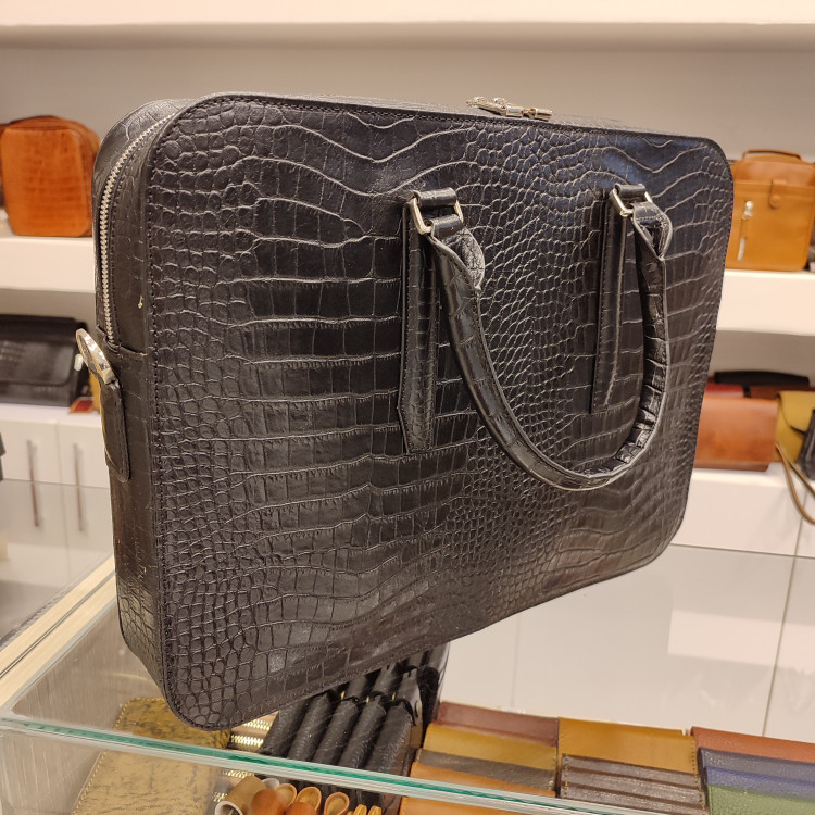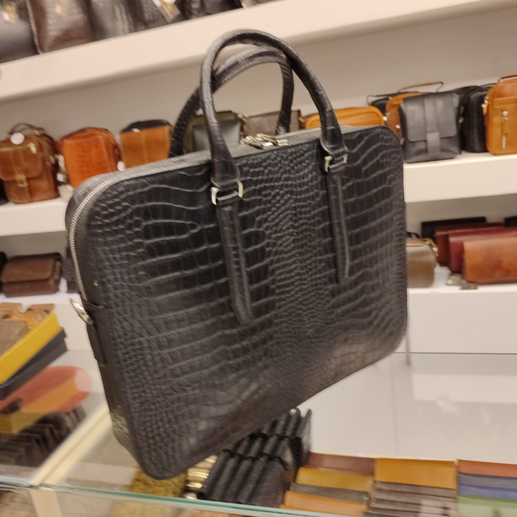 کیف اداری طرح سامسونت ساخته شده از چرم گاوی کروکودیلی، دارای تسمه دوشی و دسته جداگانه برای حمل آسانتر و فضای اضافی برای تبلت و لوازم اداری
