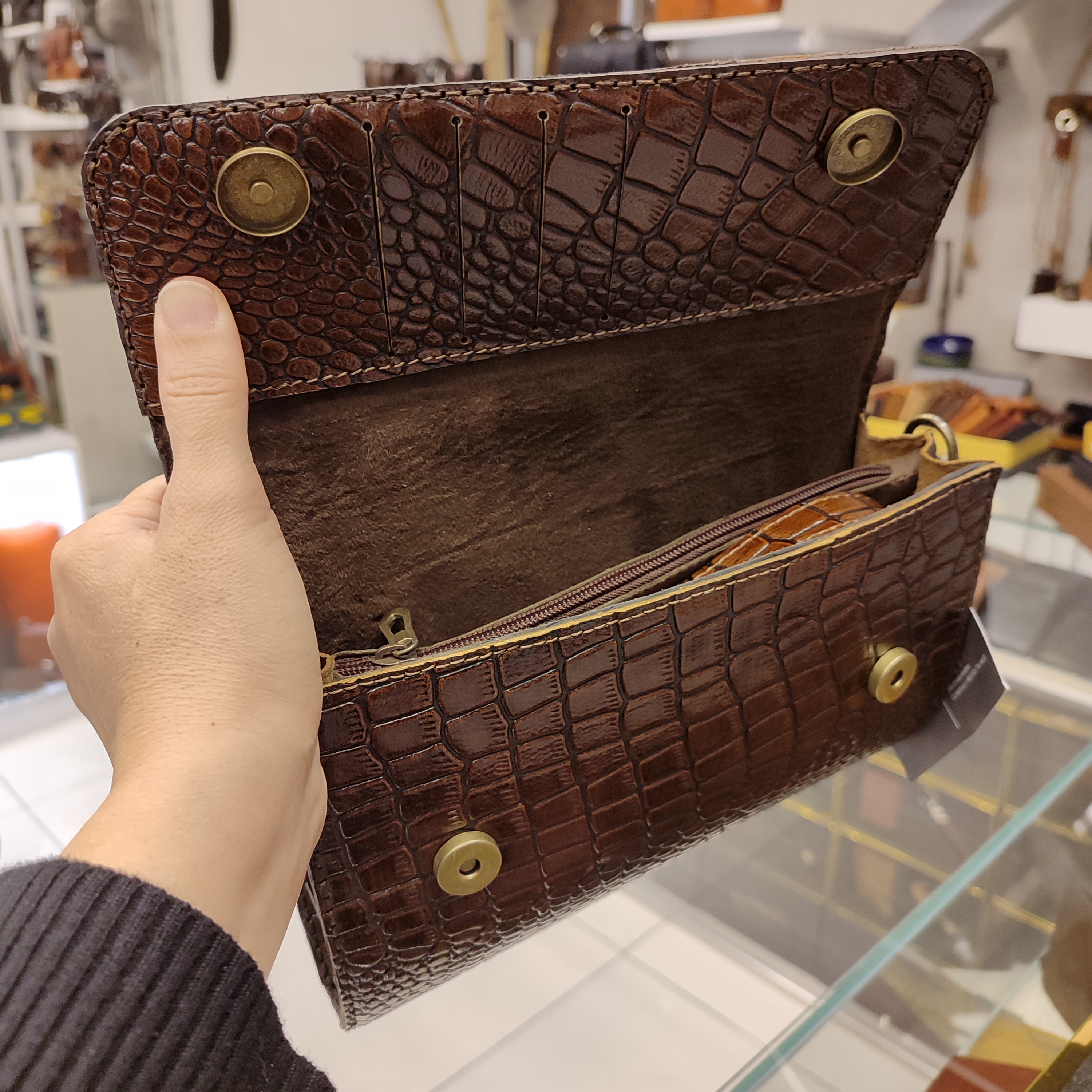کیف کلاچ چرمی دست دوز زنانه مدل C399