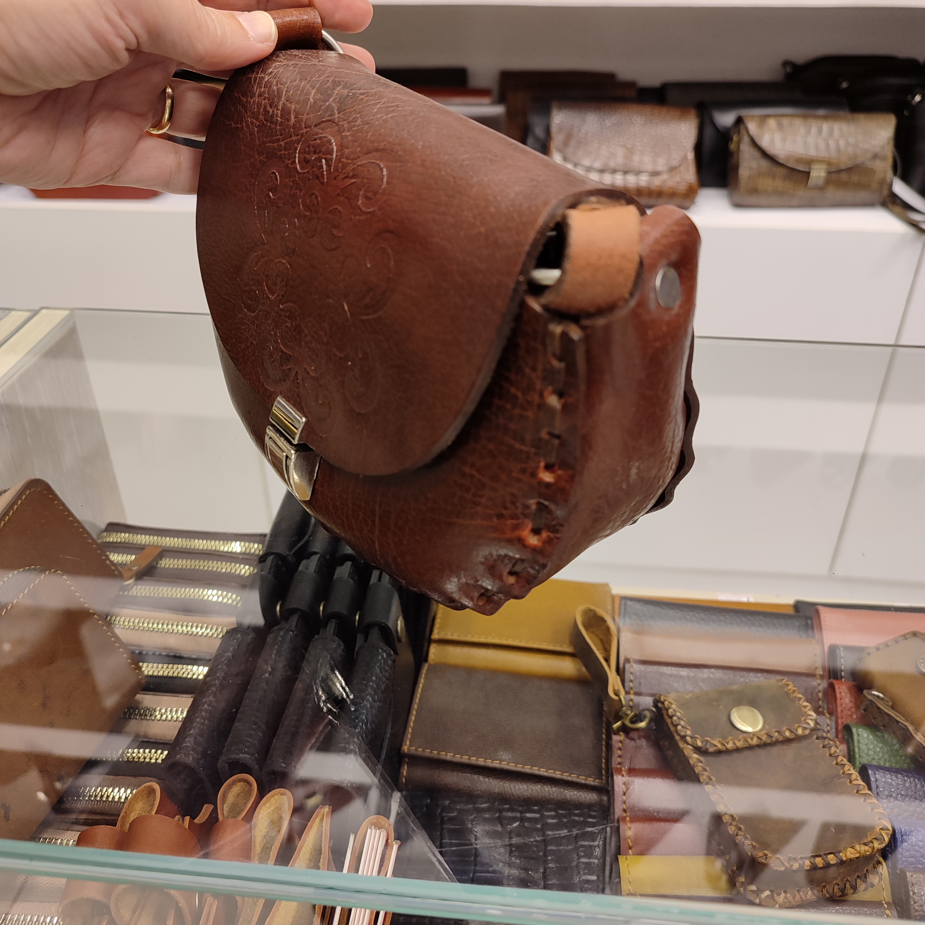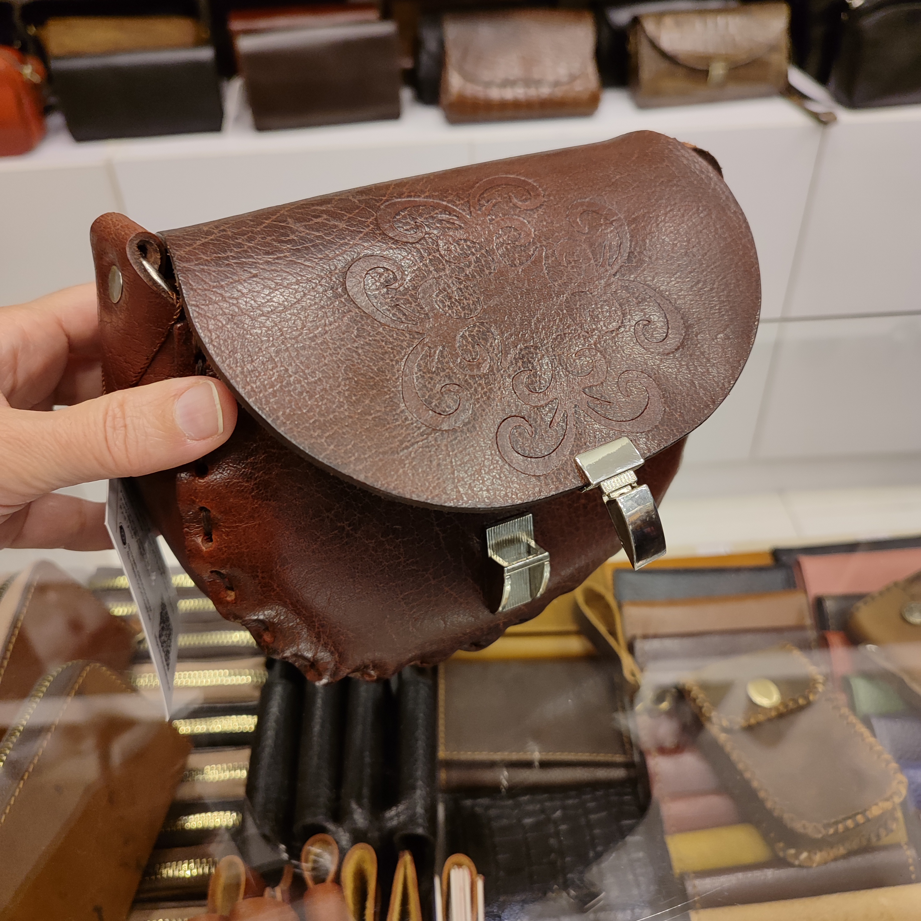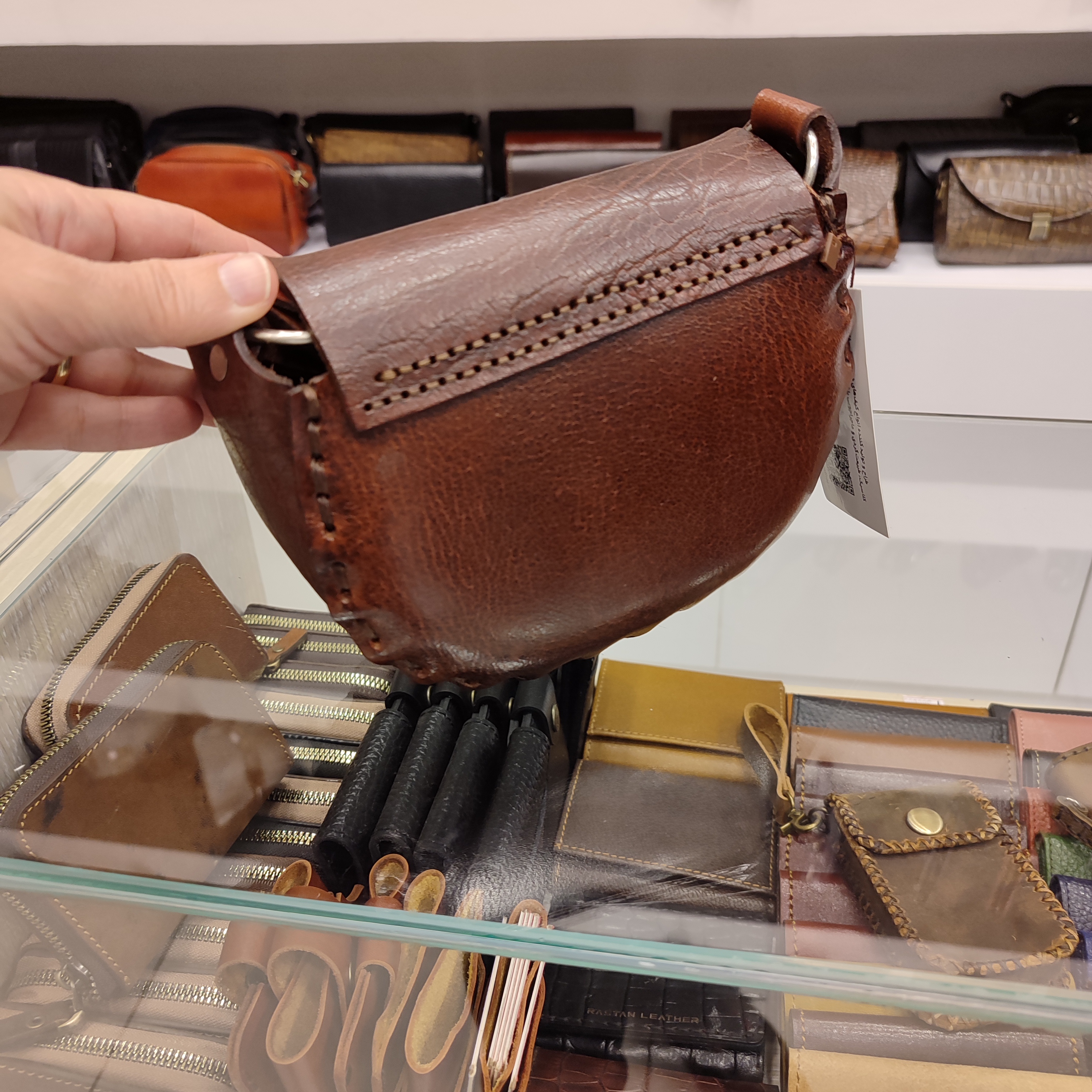 کیف مینیمال چرمی نیم گرد حکاکی شده دست دوز مدل C406
