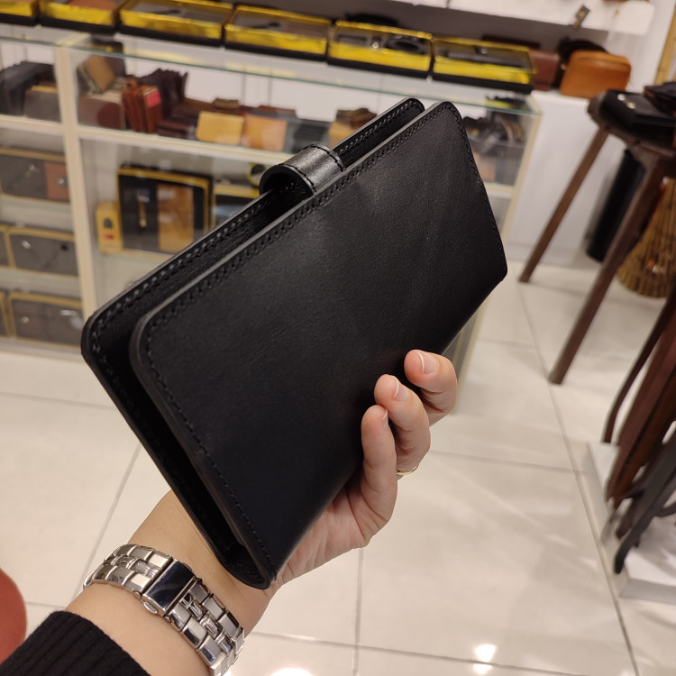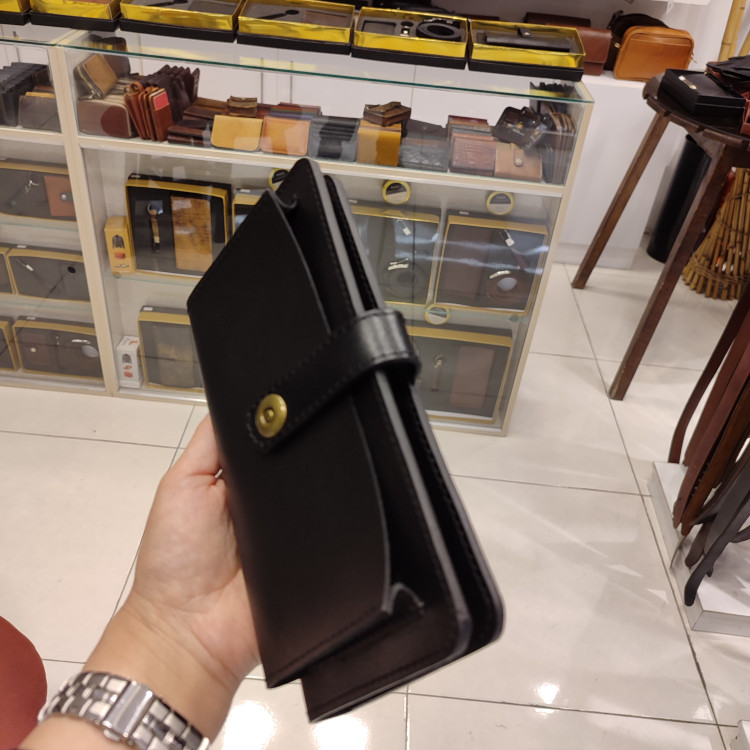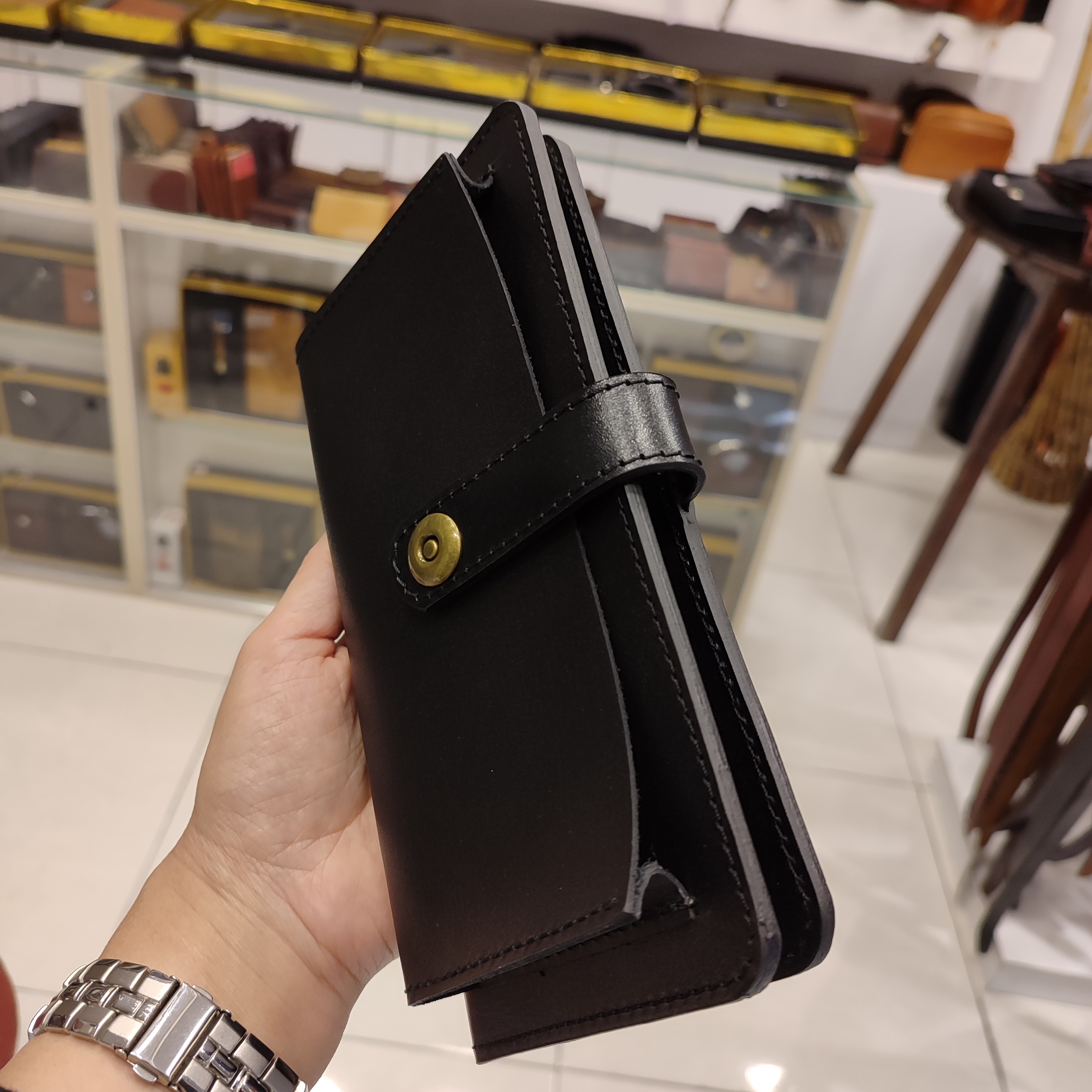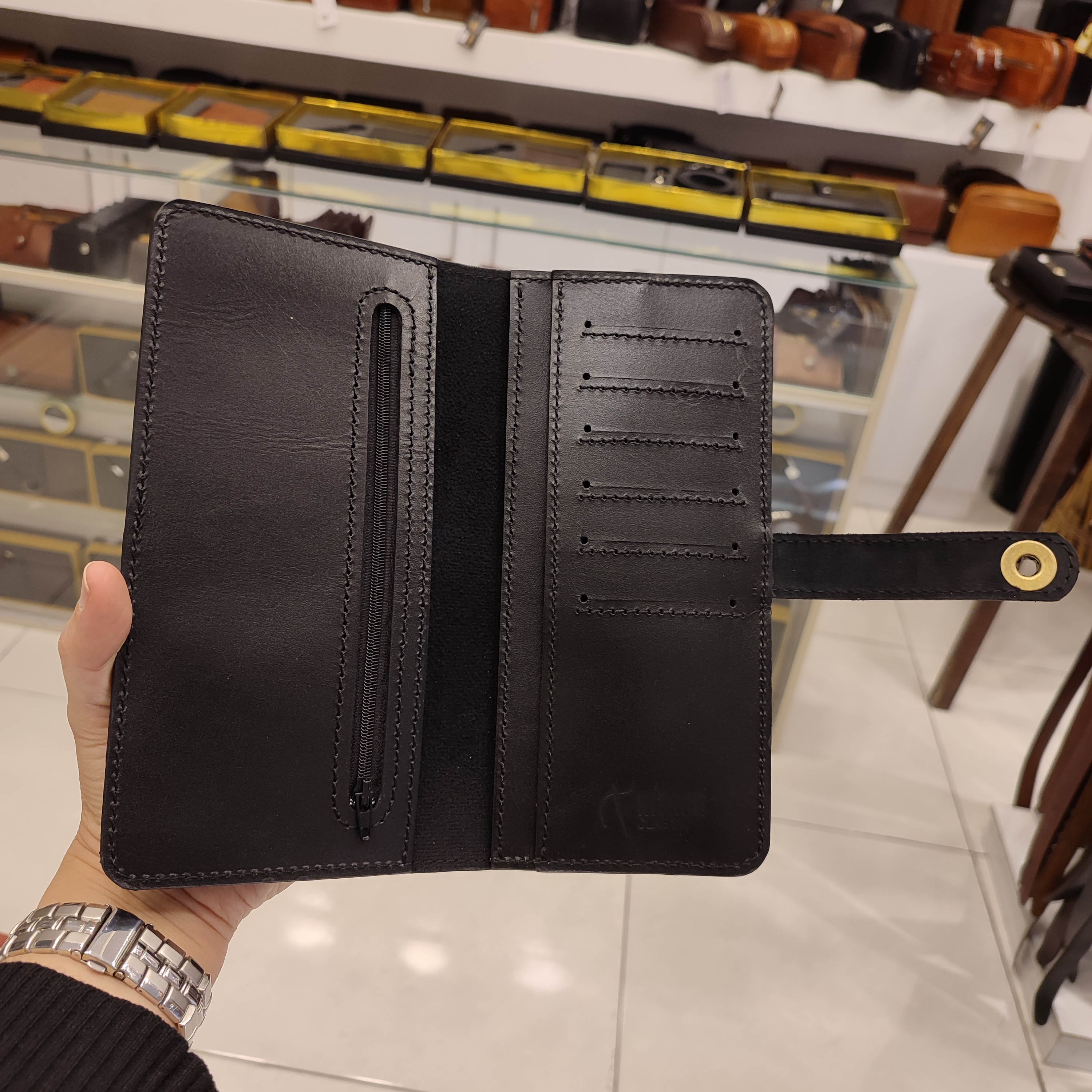 کیف دستی چرمی ساخته شده از چرم گاوی شبرو(ساده), دارای جای موبایل بیرونی و ۶ جاکارتی و جای موبایل و مدارک داخلی و تسمه با قفل مگنتی برنجی است.