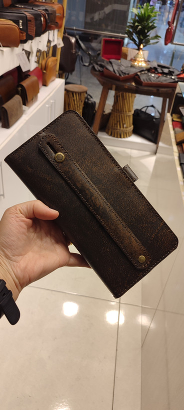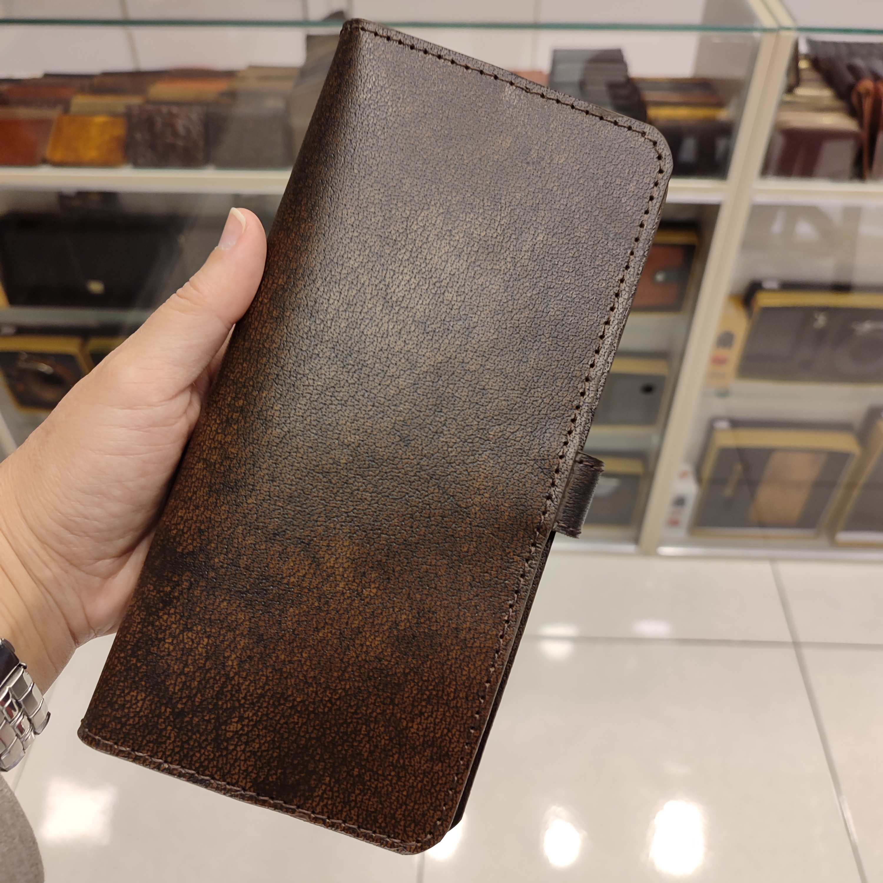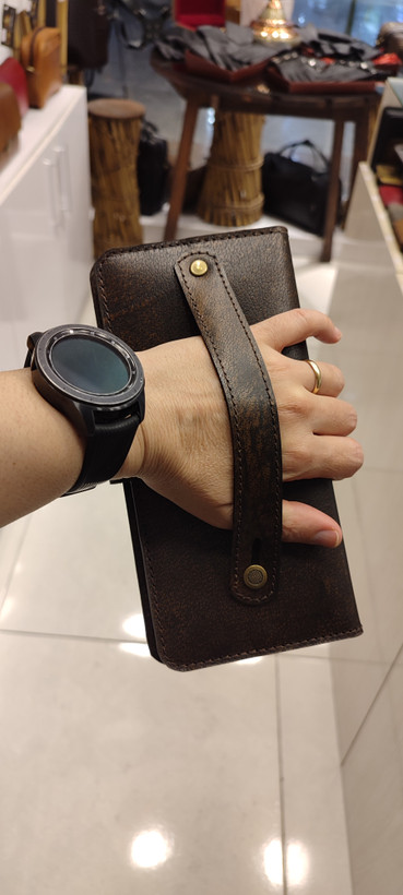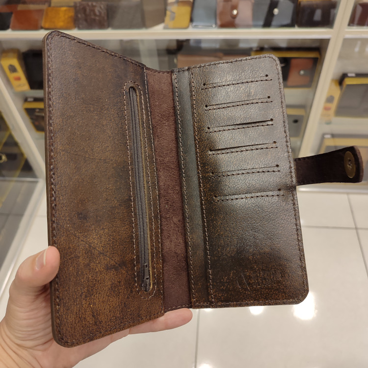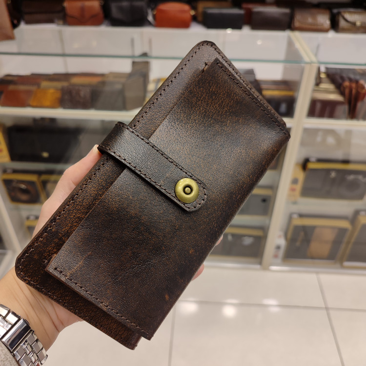 کیف دستی چرمی ساخته شده از چرم گاومیش رگه دار زیبا درجه یک، دارای جای موبایل بیرونی و ۶ جاکارتی و جای موبایل و مدارک داخلی و قفل مگنتی و دسته ضدسرقت انگلیسی پشت کیف است.