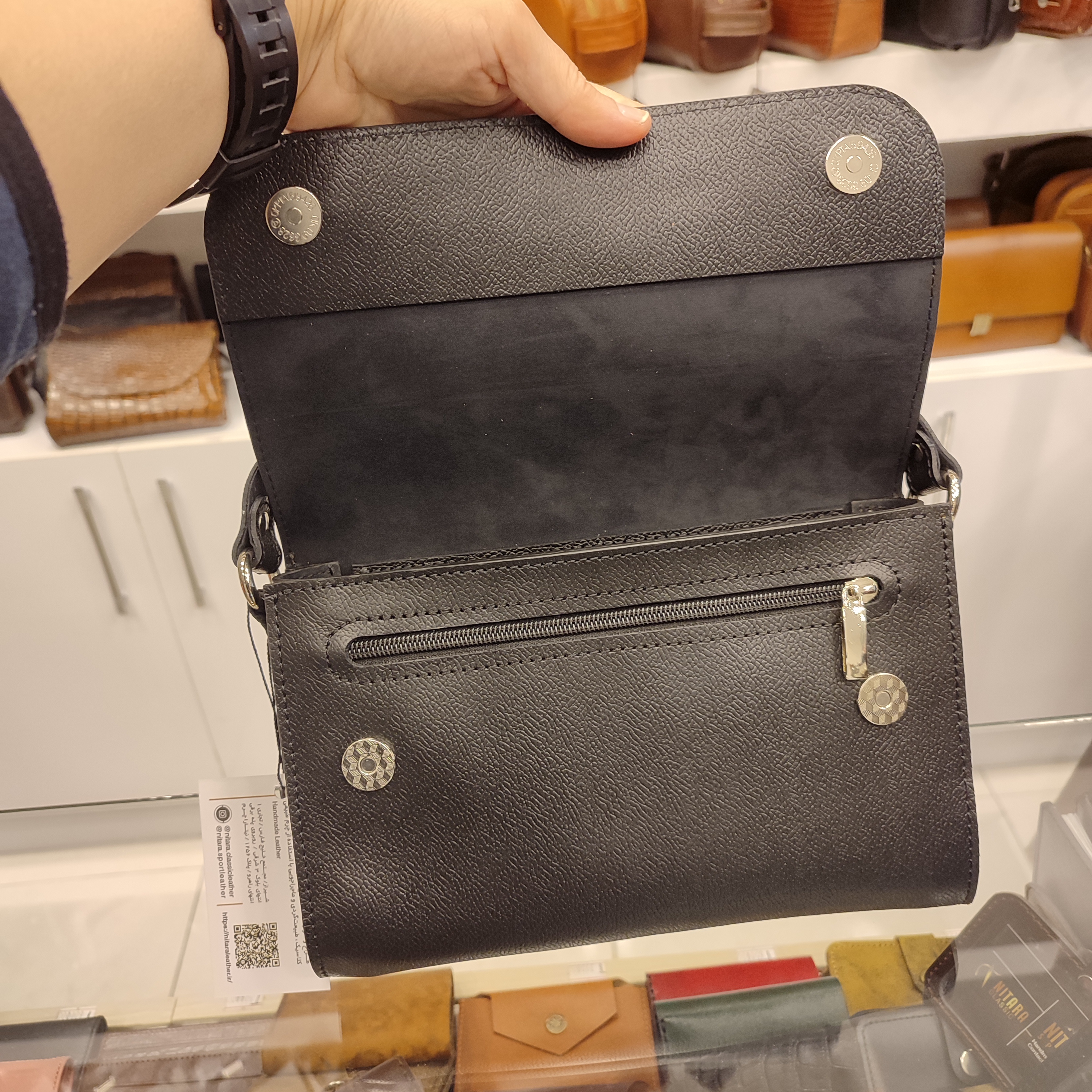کیف مجلسی چرمی زنانه ساخته شده از چرم گاوی پرینچ اعلا، دارای دو زیپ بدنه جلو و پشت و زیپ قسمت اصلی است و بند رودوشی برای حمل دارد. بسیار سبک و زیبا و جادار است.