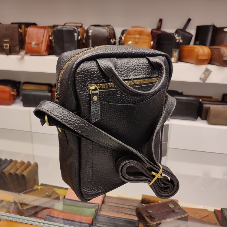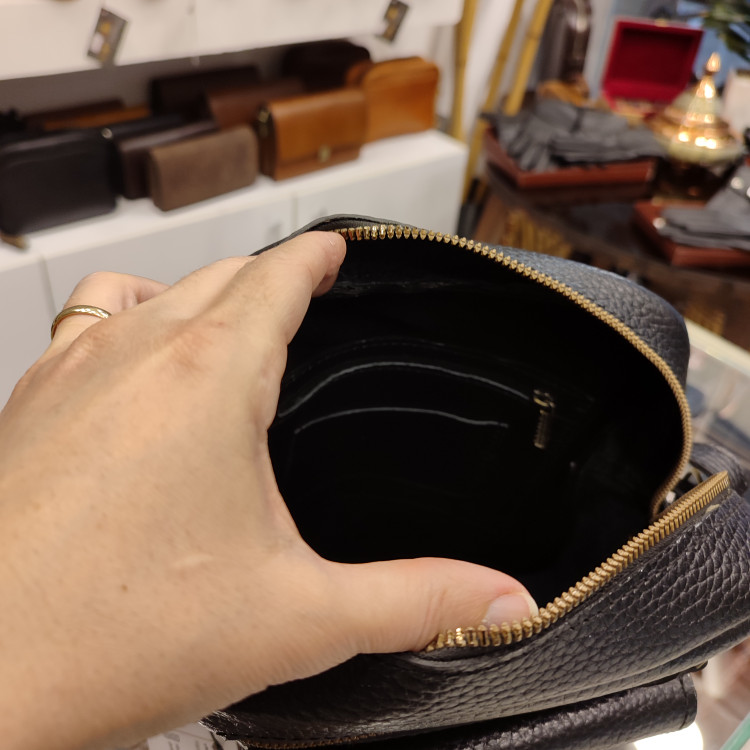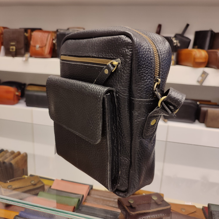 کیف رودوشی چرمی ساخته شده از چرم گاوی فلوتر درجه یک، آستر طبیعی و جیب و زیپ جلو و پشت و زیپ و جاکارتی داخل کیف، دارای دسته بالا و بند رودوشی است.