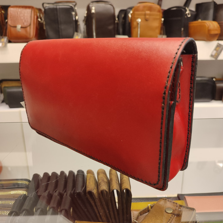 کیف دستی دوشی دست ساز ساخته شده با چرم گاوی درجه یک، دارای بنددوشی، بندمچی،تسمه ضدسرقت پشت، دارای فضاهای تفکیکی داخلی و ۵ جای کارت و فضای زیپ دار است
