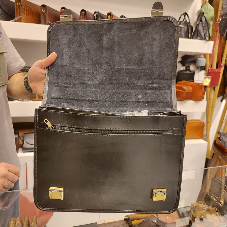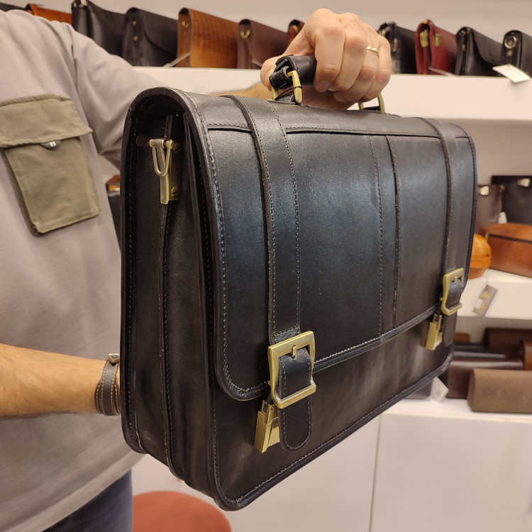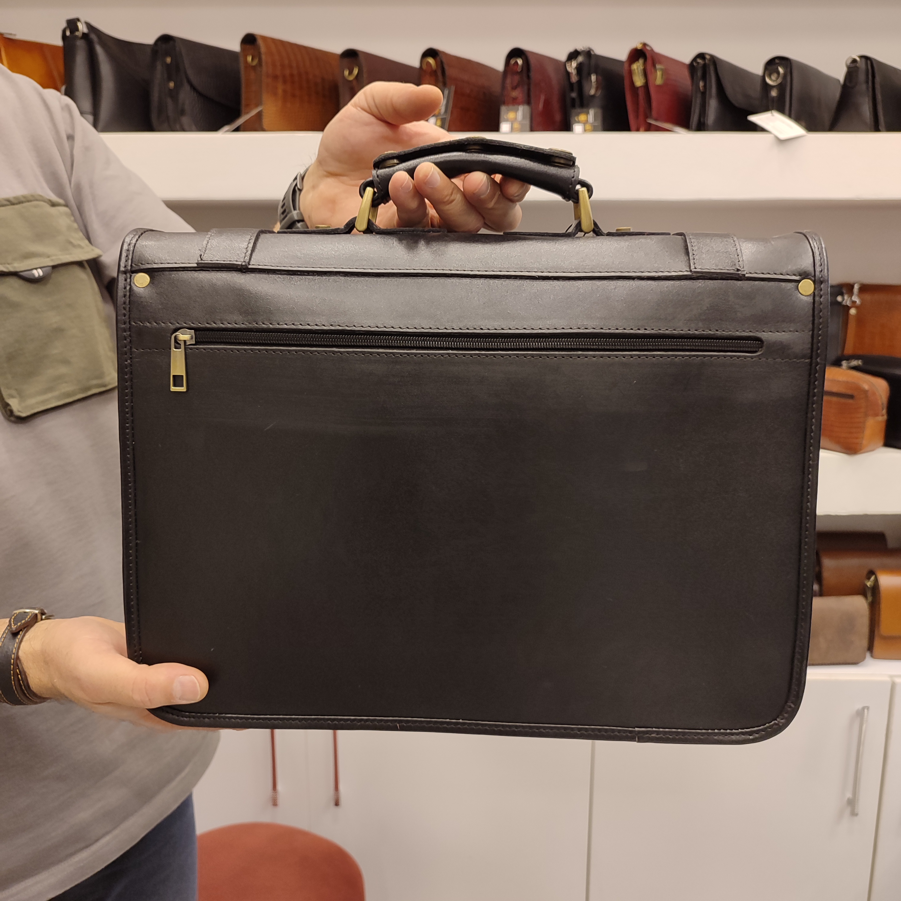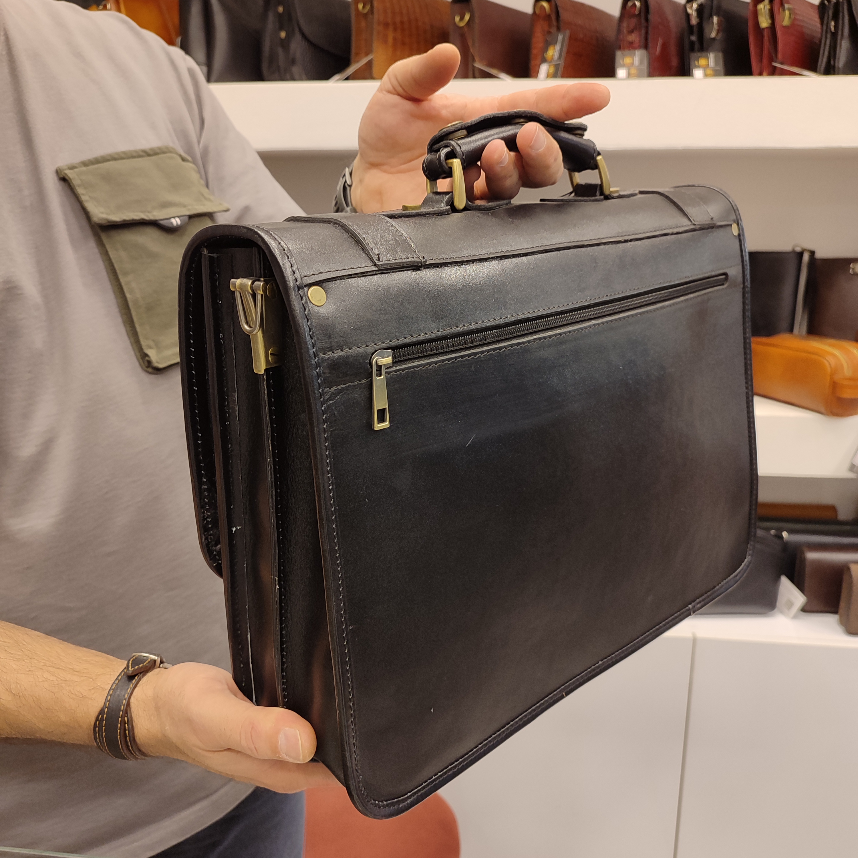 کیف اداری چرمی ساخته شده از چرم گاوی درجه یک، دارای دو فضای اصلی و زیپ و جیب جانبی و فضاسازی عالی برای لوازم ، دو قفل رمزدار، دسته بالایی و بند دوشی
