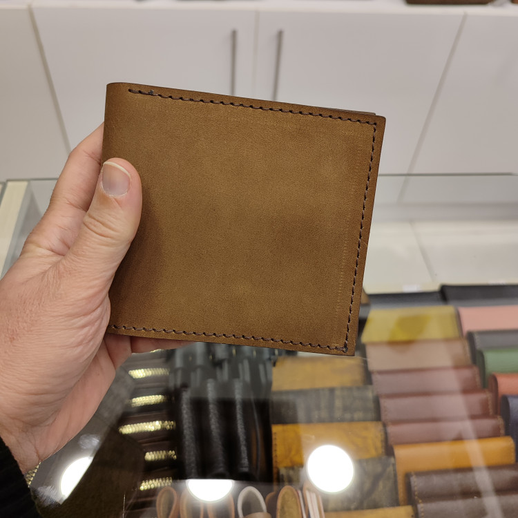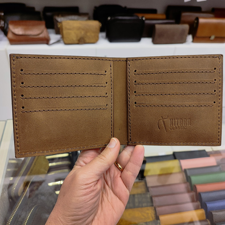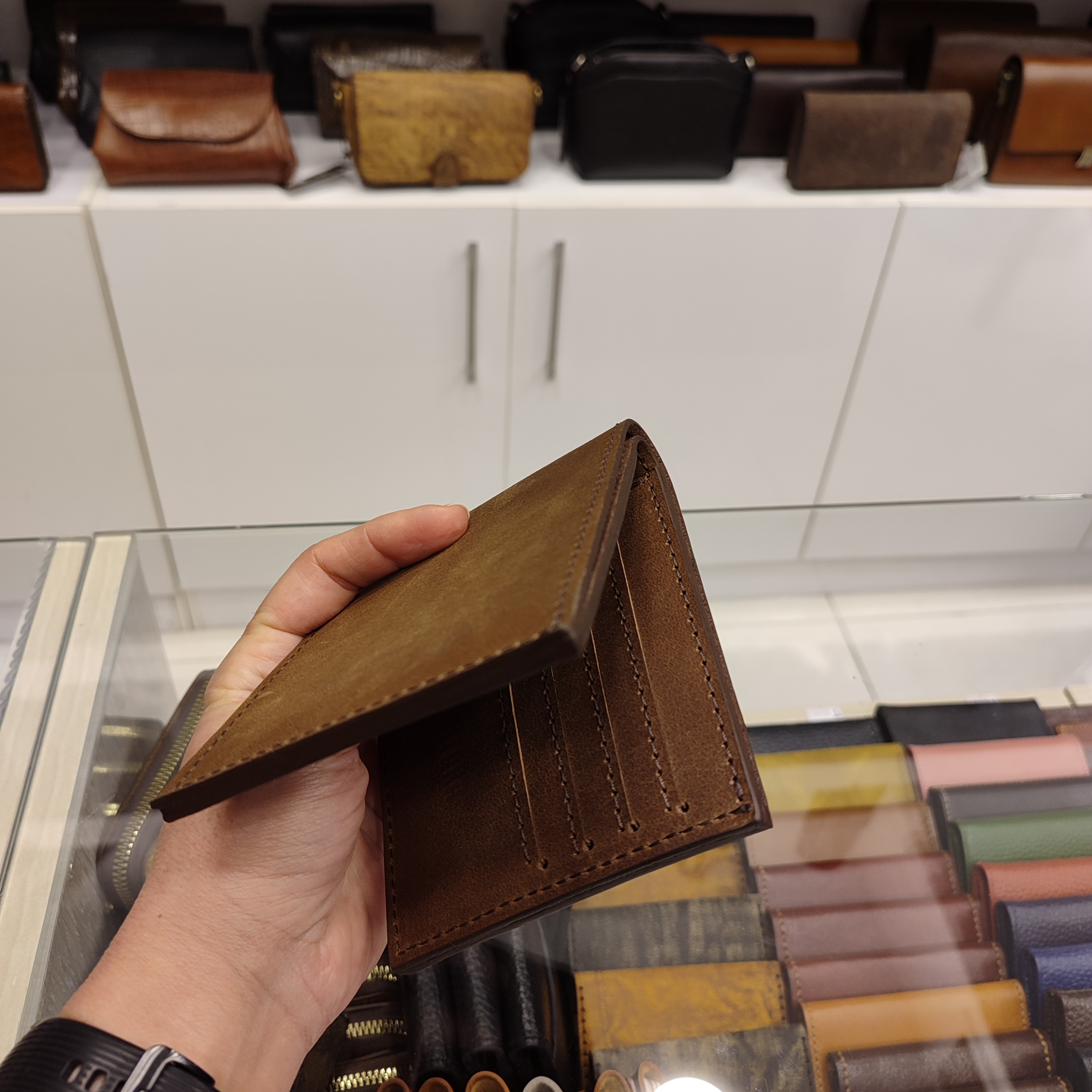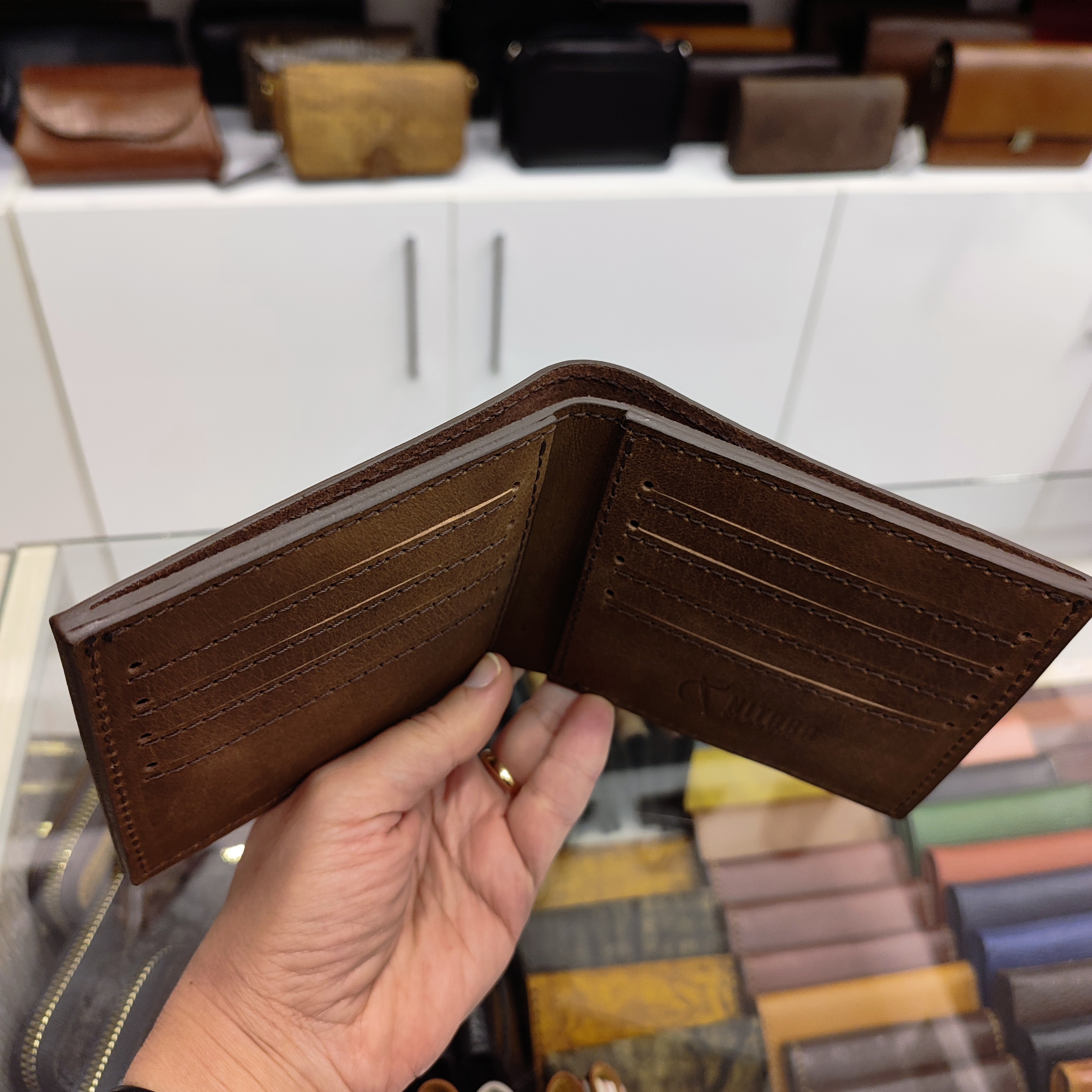 کیف پولی جیبی چرمی ساخته شده از چرمی گاوی هورسی افکتی، دارای ۸ جای کارت و دو فضای مدارک داخلی و جای اسکناس جداگانه