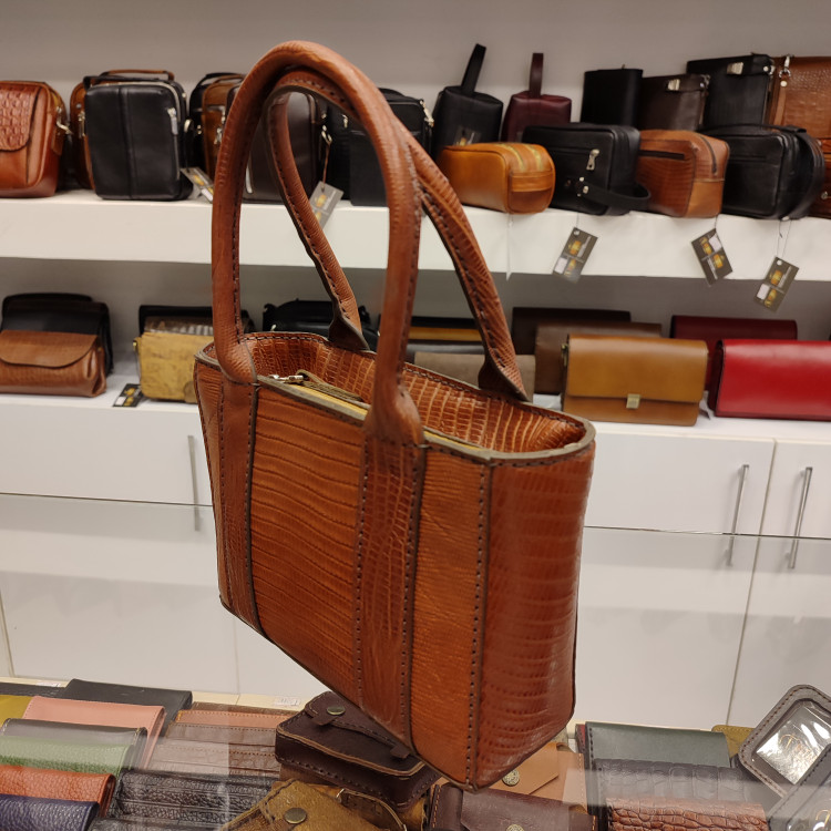کیف دستی زنانه چرمی ساخته شده از چرمی گاوی لیزارد درجه یک، کاملا دست دوز ، دارای بند دستی کوتاه، جیب و زیپ داخلی، فضای اصلی زیپ دار و آستر طبیعی است. بسیار سبک و مناسب و جادار برای استفاده مجلسی و روزمره