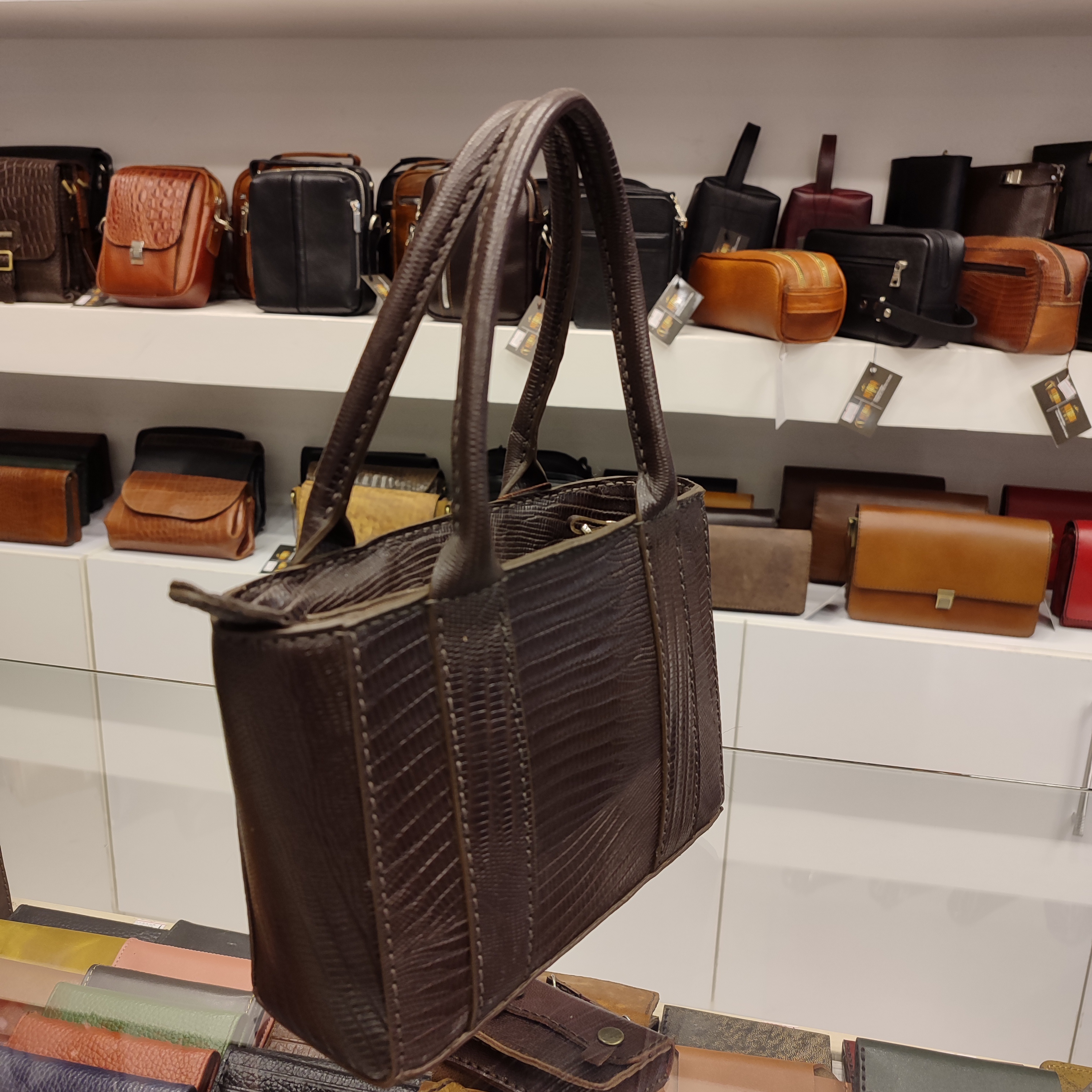 کیف دستی زنانه چرمی ساخته شده از چرمی گاوی لیزارد درجه یک، کاملا دست دوز ، دارای بند دستی کوتاه، جیب و زیپ داخلی، فضای اصلی زیپ دار و آستر طبیعی است. بسیار سبک و مناسب و جادار برای استفاده مجلسی و روزمره